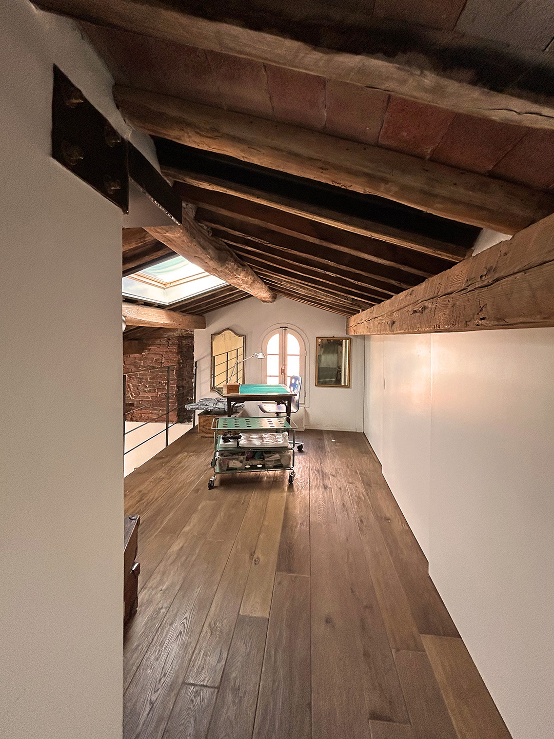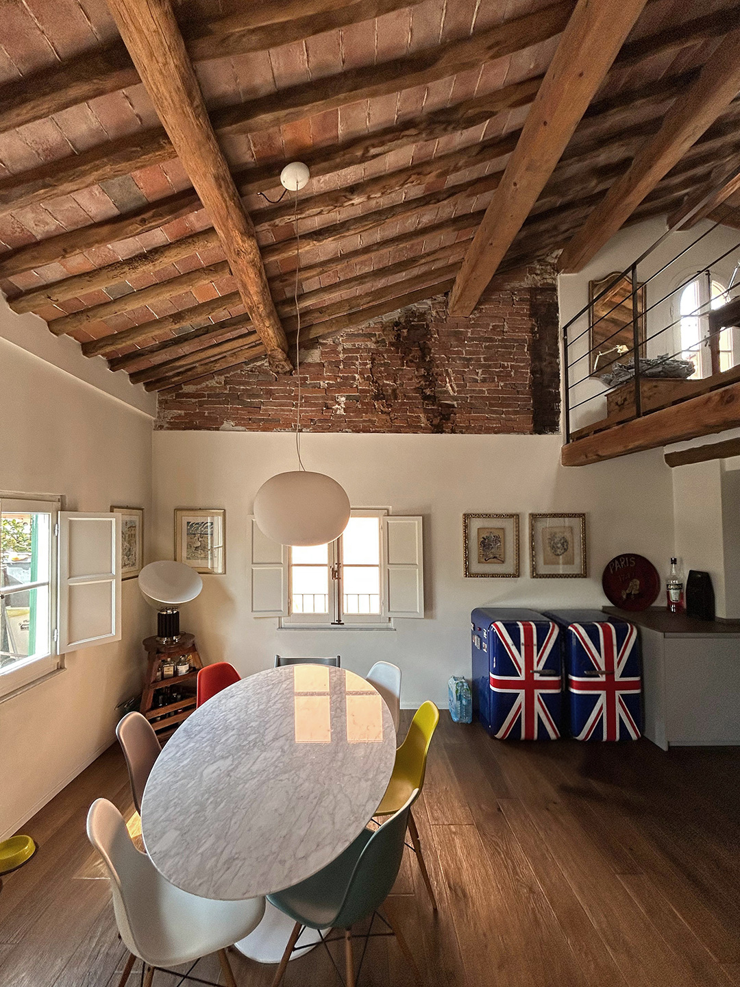 Ristrutturazione di una unità abitativa disposta su tre livelli in un antico fabbricato posto nella periferia di Lucca. Il progetto di ristrutturazione mira a valorizzare in modo equilibrato il carattere storico dell’edificio, integrandolo con soluzioni moderne e cura nei dettagli. La muratura in laterizio lasciata a vista, come i solai con travi in legno a vista e mezzane in cotto, testimoniano la volontà di preservare la tradizione costruttiva del luogo. L’arredo e l’illuminazione, dal taglio moderno, si integrano nel contesto storico contribuendo a definire un ambiente contemporaneo e dinamico.