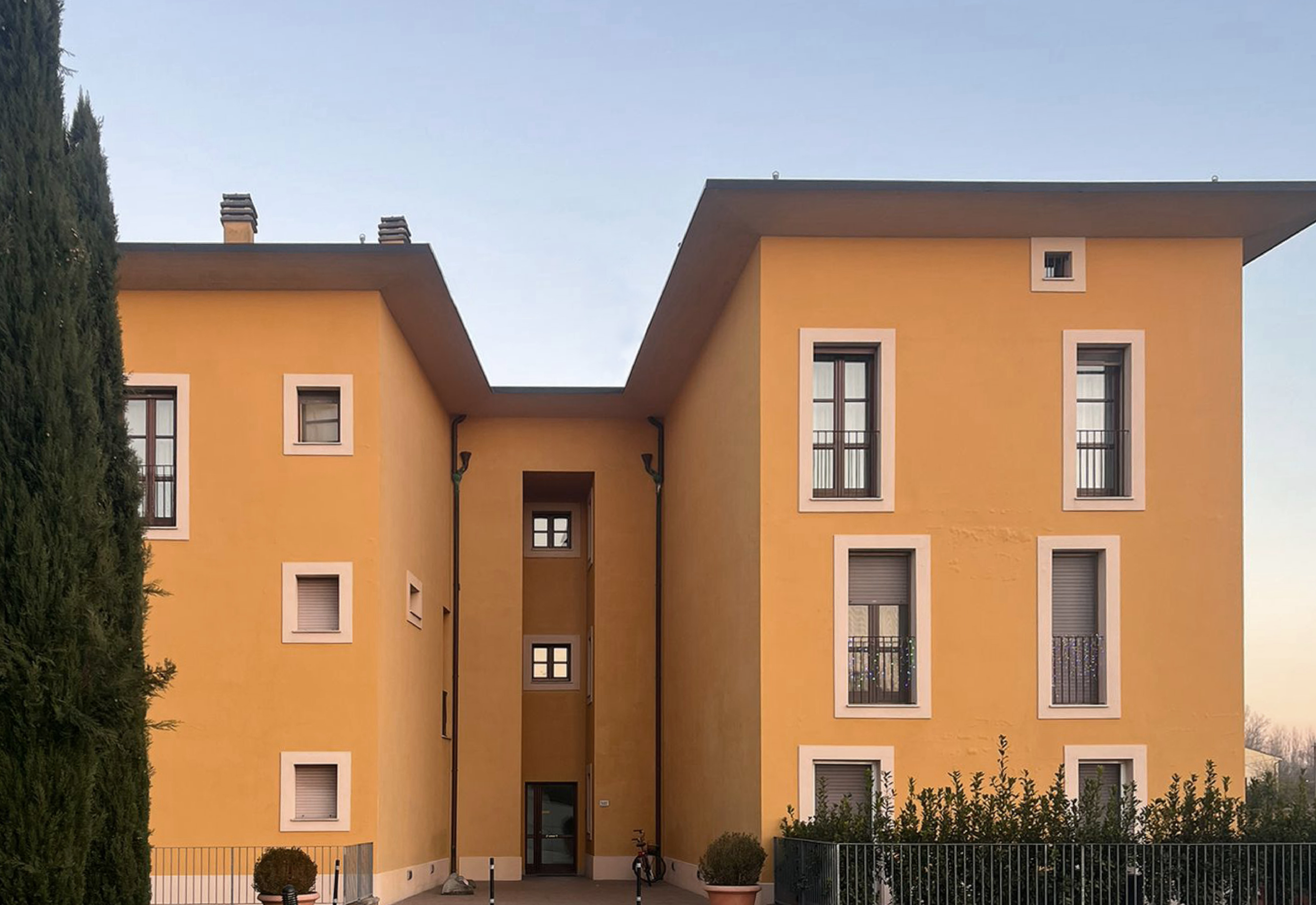 Realizzazione di 32 appartamenti in attuazione del Piano di Zona per l’Edilizia Economica e Popolare (P.E.E.P.) in frazione S.Vito per circa 11000 mc. Si tratta di un progetto di Edilizia Convenzionata in Cooperativa realizzato in una zona residenziale periferica. Il complesso, costituito da cinque fabbricati per complessivi 20 appartamenti, è articolato su un lotto di forma trapezoidale, al centro del quale è stato realizzato uno spazio comune su cui si affacciano gli ingressi alle palazzine. Questo spazio pedonale, con chiaro riferimento al tema della piazza, è il fulcro del progetto. Con tale progetto non si è inteso realizzare un semplice manufatto edilizio rispondendo soltanto a diversificate esigenze abitative, ma costruire un vero e proprio aggregato urbano, modulato su spazi costruiti e spazi aperti. Il filo conduttore dello spazio condiviso, che in questo progetto si concretizza nei porticati e negli spazi comuni chiusi e aperti, nasce dalla volontà di dividere la carrabilità dall’aggregazione, secondo una convivialità che dà agli edifici un valore aggiunto e materializza il senso del costruire in cooperativa.