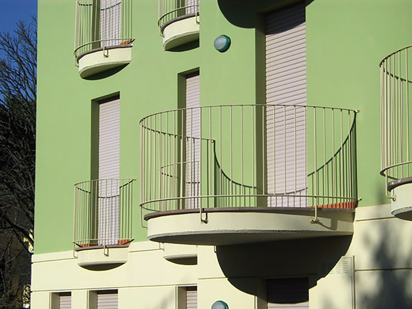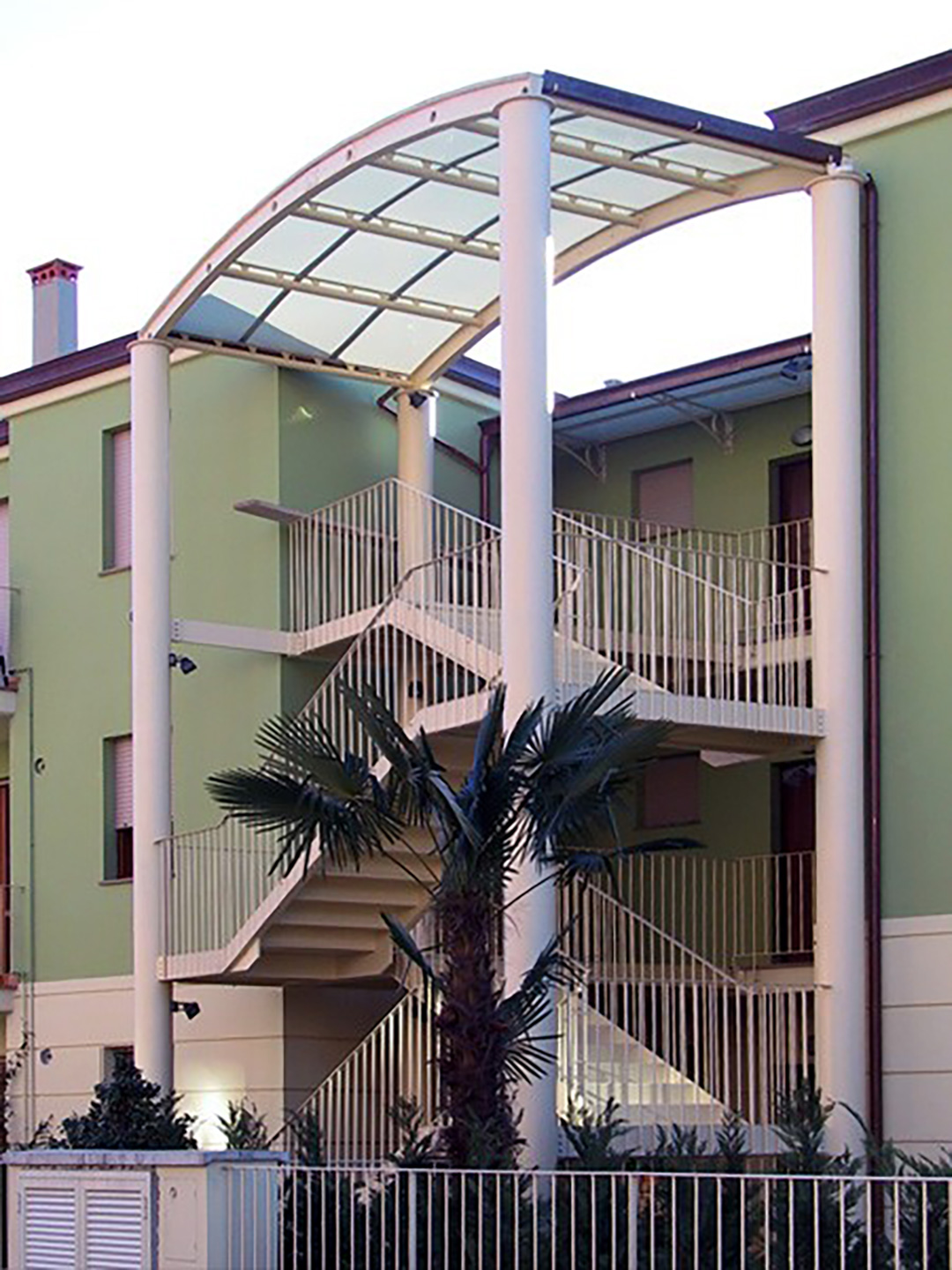 Complesso residenziale composto da 9 appartamenti a S. Anna. Caratteristica identificativa dell’intero fabbricato residenziale è la scala esterna, realizzata in ferro verniciato e con pilastri gettati in opera. L’origine di questa soluzione trova la sua ragione nelle indicazioni del committente, contrario all’ubicazione interna di tale elemento distributivo.
