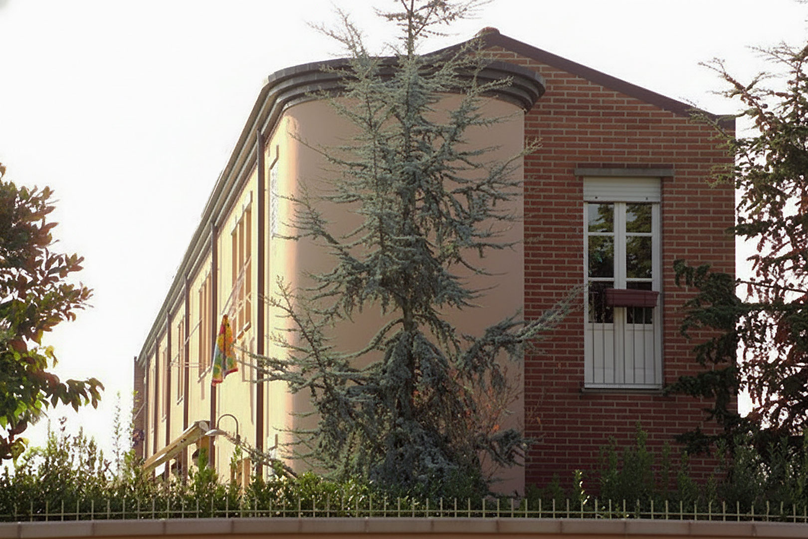 Il lotto si prestava a una soluzione innovativa concretizzatasi con la realizzazione di un modulo flessibile nelle sue dimensioni che, più volte applicato, ha permesso di ottenere un rapporto di perpendicolarità fra la prima e l’ultima casa. L’impiego del mattone a faccia vista ha esaltato i setti divisori e la riconoscibilità dell’unità abitativa dall’esterno, mentre l’intonaco rosso Siena ha esaltato la parte non scalettata dell’intervento.